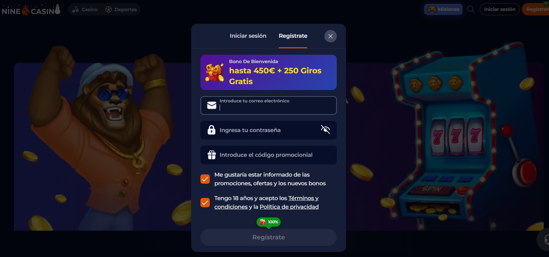 El registro en Nine Casino es algo que solo debes hacer una vez y aún así es fácil y rápido, haz lo siguiente:
